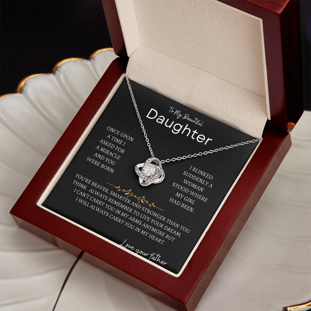 Imagine her reaction receiving this beautiful Love Knot Necklace. Representing an unbreakable bond between two souls, this piece features a beautiful pendant embellished with premium cubic zirconia crystals. Surprise your loved one with this gorgeous gift today!