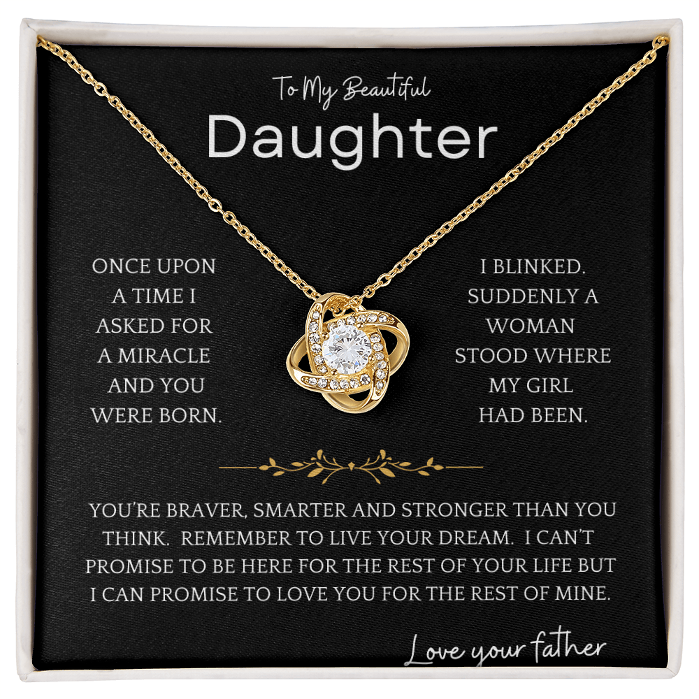 Now, you can give her a lasting reminder of your unbreakable bond with the Necklace to Daughter from Dad – Asked For Miracle Necklace from Father. It's not just jewelry – it's a piece of your heart she can wear close to hers.