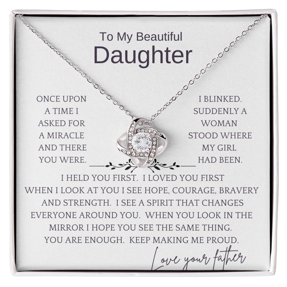 Imagine her reaction receiving this beautiful Love Knot Necklace. Representing an unbreakable bond between two souls, this piece features a beautiful pendant embellished with premium cubic zirconia crystals. Surprise your loved one with this gorgeous gift today!