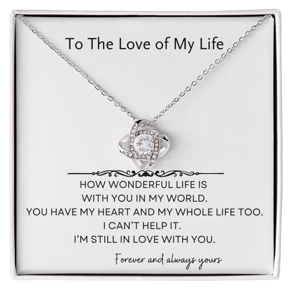 Imagine her reaction receiving this beautiful Love Knot Necklace. Representing an unbreakable bond between two souls, this piece features a beautiful pendant embellished with premium cubic zirconia crystals. Surprise your loved one with this gorgeous gift today!