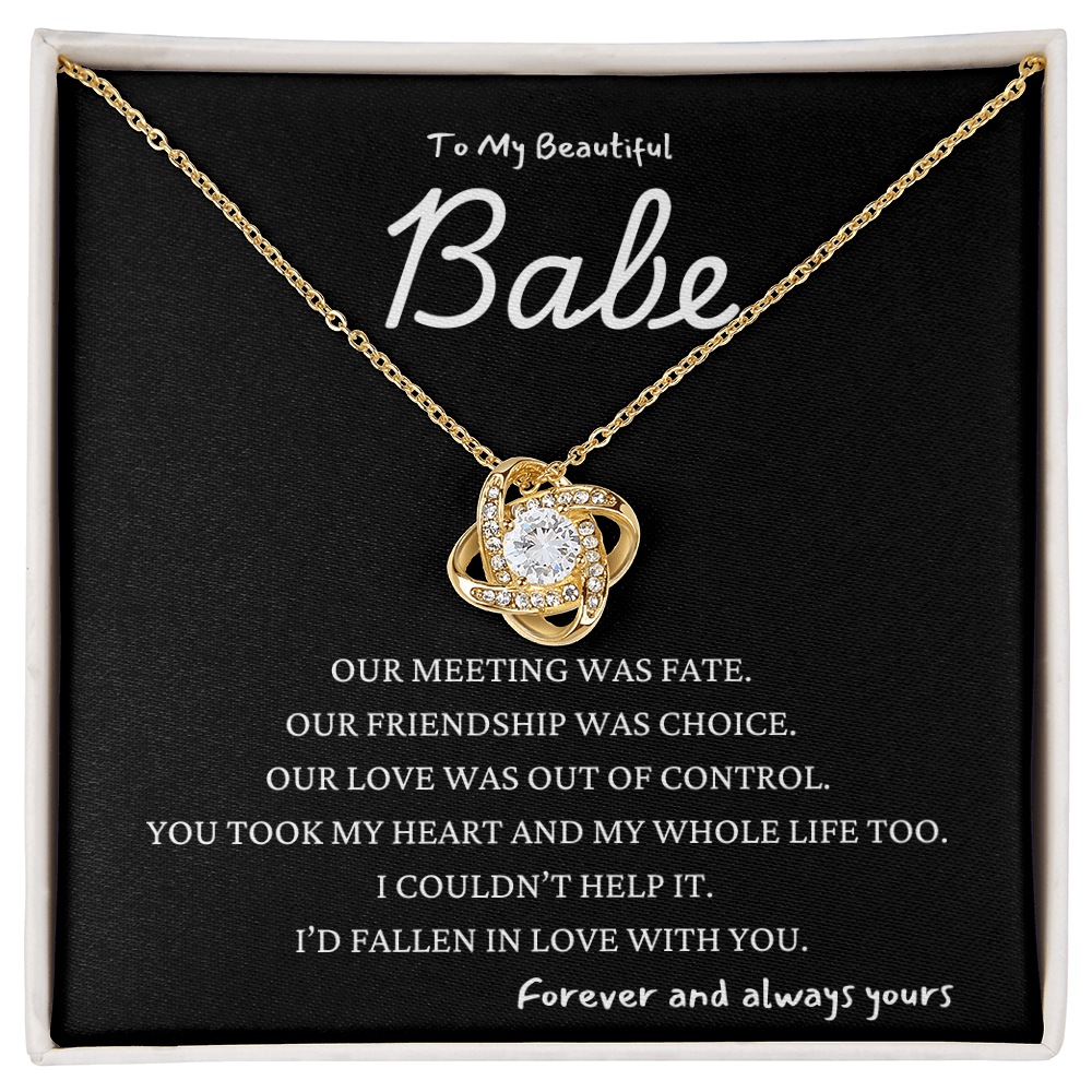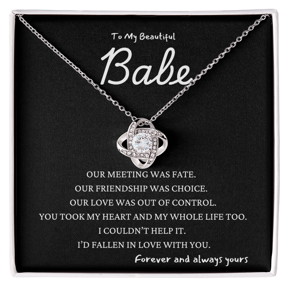 Imagine her reaction receiving this beautiful Love Knot Necklace. Representing an unbreakable bond between two souls, this piece features a beautiful pendant embellished with premium cubic zirconia crystals. Surprise your loved one with this gorgeous gift today!
