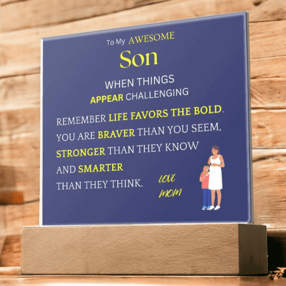 Combine modern technology and a heartfelt message with our Square Acrylic Plaque! This design is printed on crystal-clear premium acrylic and easily becomes the centerpiece of any room. And the contemporary design wouldn't be complete without its sleek wooden base, elevating the display that will instantly become a conversation starter. Create a memorable presentation when you upgrade to the LED wooden base! This is the ideal present for your beloved partner, family members, or dear friends on special occasions like anniversaries, birthdays, or any occasion where you want to express your love and appreciation in an unforgettable way. Let your loved ones know how much they mean to you by purchasing today!