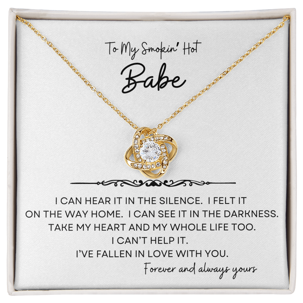 Imagine her reaction receiving this beautiful Love Knot Necklace. Representing an unbreakable bond between two souls, this piece features a beautiful pendant embellished with premium cubic zirconia crystals. Surprise your loved one with this gorgeous gift today!