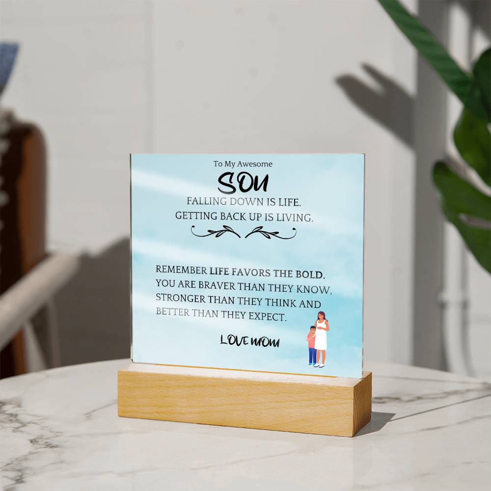 Combine modern technology and a heartfelt message with our Square Acrylic Plaque! This design is printed on crystal-clear premium acrylic and easily becomes the centerpiece of any room. And the contemporary design wouldn't be complete without its sleek wooden base, elevating the display that will instantly become a conversation starter. Create a memorable presentation when you upgrade to the LED wooden base! This is the ideal present for your beloved partner, family members, or dear friends on special occasions like anniversaries, birthdays, or any occasion where you want to express your love and appreciation in an unforgettable way. Let your loved ones know how much they mean to you by purchasing today!