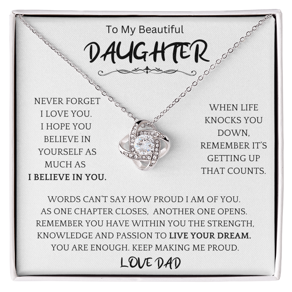 Imagine her reaction receiving this beautiful Love Knot Necklace. Representing an unbreakable bond between two souls, this piece features a beautiful pendant embellished with premium cubic zirconia crystals. Surprise your loved one with this gorgeous gift today!