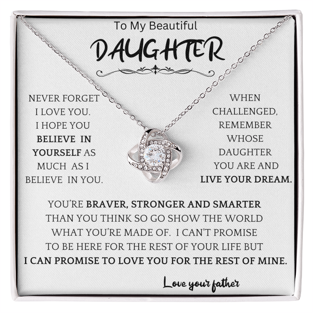 Imagine her reaction receiving this beautiful Love Knot Necklace. Representing an unbreakable bond between two souls, this piece features a beautiful pendant embellished with premium cubic zirconia crystals. Surprise your loved one with this gorgeous gift today!